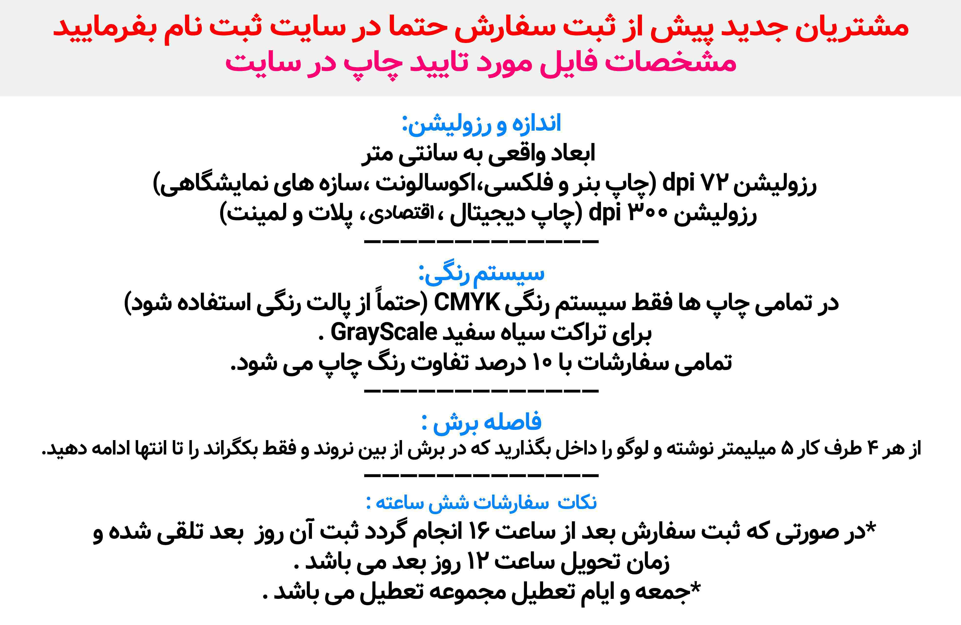 محصول مورد نظر را به همراه مشخصات مدنظر انتخاب کنید، فایل مورد نیاز را آپلود کرده و قبل از تسویه حساب نهایی ثبت نام یا لاگین کنید. در نهایت با پرداخت از طریق کارت های بانکی سفارش خود را نهایی نمایید.